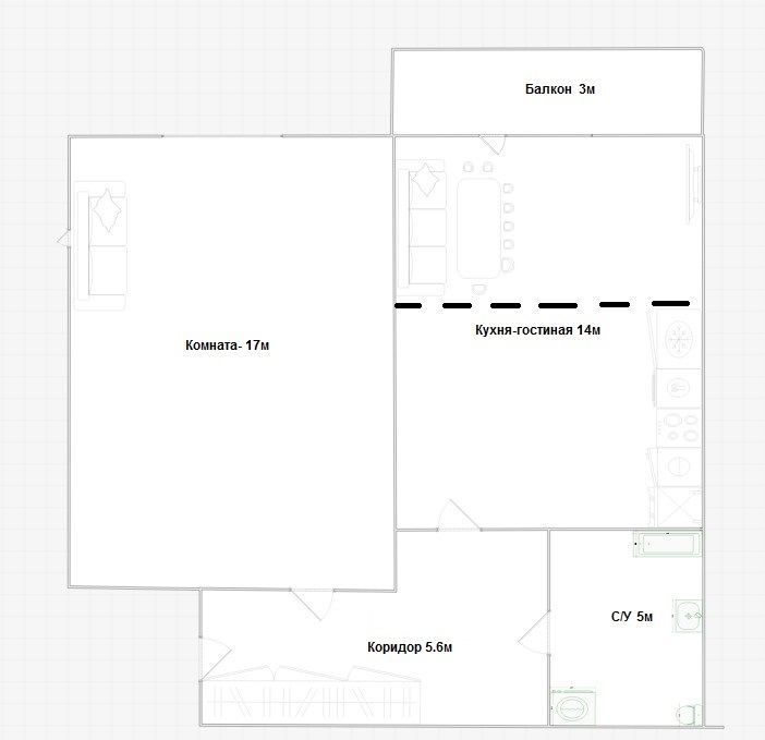 Удобная планировка: большая светлая кухня, с выходом на балкон и просторная комната!
