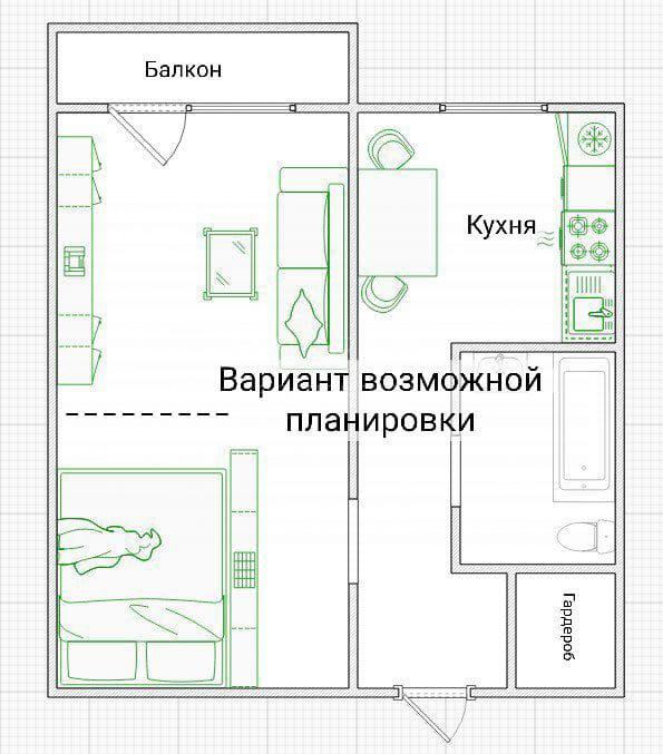 Продается теплая однокомнатная квартира в кирпичном доме. Комната большая, есть возможность сделать зонирование.