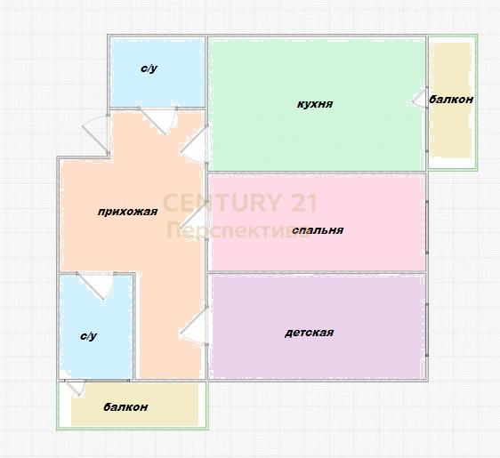 - Угловое расположение и два балкона.